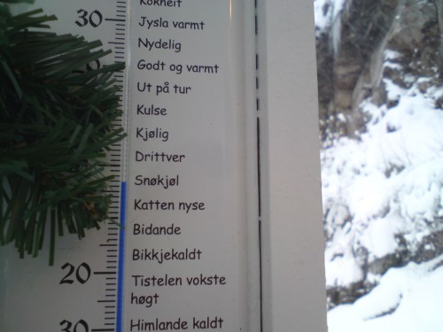 Iflg gradestokken som forteller været på flekkefjordsdialekt.